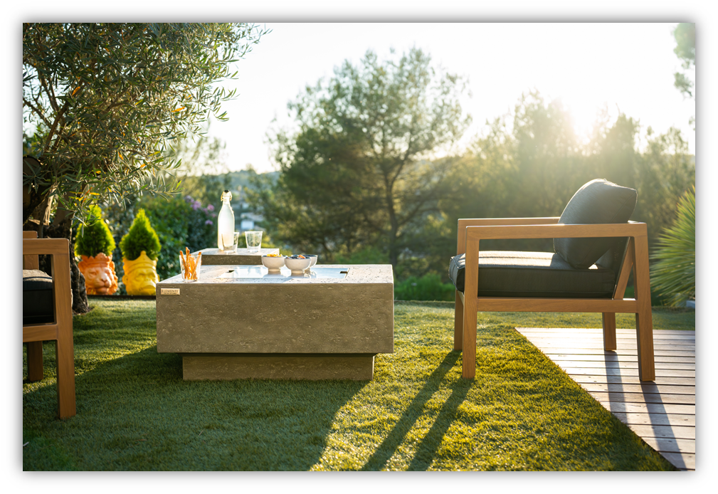 Díky nerezovému krytu se z Vašeho ohniště stane praktický designový stůl.