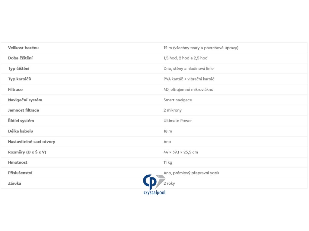 Jeho dva motory a výkonné čerpadlo z něj dělají vysoce spolehlivého robota. Tento systém tvoří Ultimate Power, ideální řešení pro rychlý a optimální pohyb, bezkonkurenční čištění a jedinečnou robustnost.