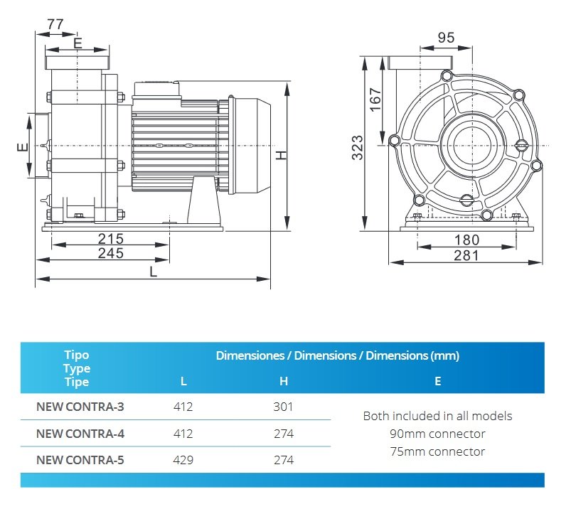 Protiproudé čerpadlo New-Contra je inovované plastové čerpadlo pro protiproudy a atrakce. Španělský výrobce klade vysoké požadavky na kvalitu použitých materiálů. Součástí balení jsou lemové nákružky pro připojení čerpadla d75 nebo d90. Tepelná ochrana součástí jednofázových modelů.