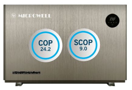 Tepelné čerpadlo Microwell HP SILVER Inverter je navrženo pro maximální účinnost, komfort a flexibilitu. V černém ABS krytu se skrývá plně invertorový kompresor a ventilátor s funkcí topení i chlazení. Jednotka pracuje až do -7 °C a je vybavena rychlým 4cestným odmrazováním.