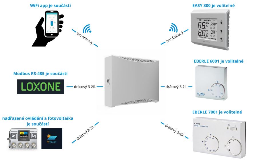 ✅ Možnost WiFi ovládání a integrace do chytré domácnosti (Modbus RS-485)