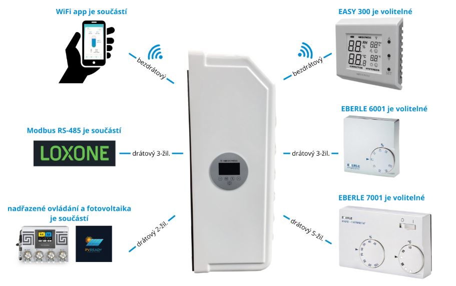 ✅ Možnost WiFi ovládání a integrace do chytré domácnosti (Modbus RS-485)