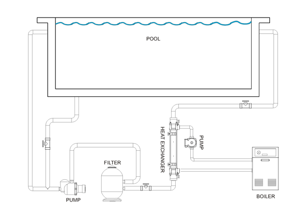 Byl navržen tak, aby umožnil instalačnímu technikovi vybrat způsob, jak instalovat primární a sekundární přítok vody, aby se dosáhlo maximálního tepelného zisku. Toho je dosaženo směrováním primárního toku v opačném směru k sekundárnímu toku (bazénové) vody.