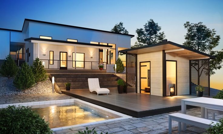 Kolem sauny můžete vybudovat příjemnou relaxační zónu, zahrnující venkovní kuchyň, vířivku či bazén.