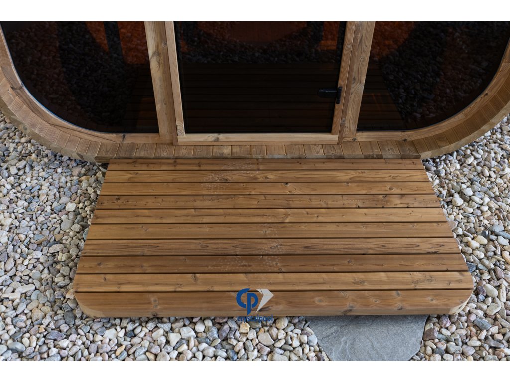 Dřevěná předložka před saunu je praktickým a stylovým doplňkem ke každé sauně. Zajišťuje komfortní a bezpečný nášlap při vstupu i výstupu ze sauny a zároveň pomáhá udržet okolí suché a čisté.