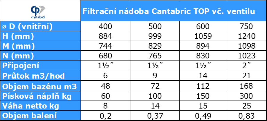 Filtrační nádoba Astralpool Cantabric d750 TOP vč. ventilu, 21 m3/h, 300 kg písku