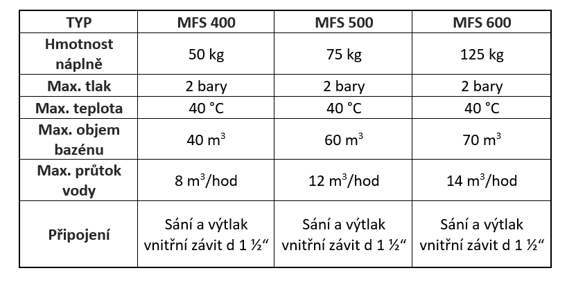 | ? Náplň filtrační nádoby: | křemičitý písek (není součástí balení) |