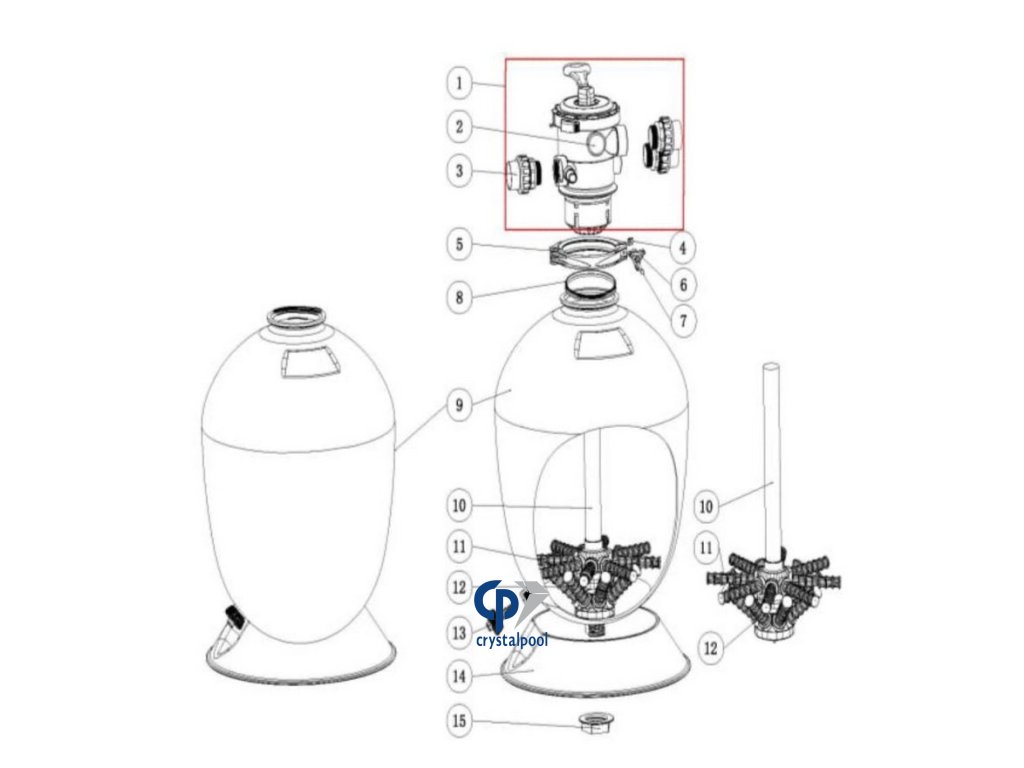 | Osazení filtrační nádoby: | horní 6 cestný ventil |