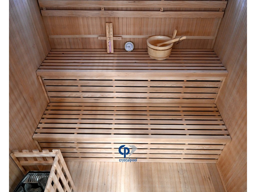 Elegantní domácí tradiční finská sauna Luonto 5 je navržena pro pět osob a vyrobena z kanadského smrku. Tato sauna se hodí do interiéru rodinného domu i bytu.