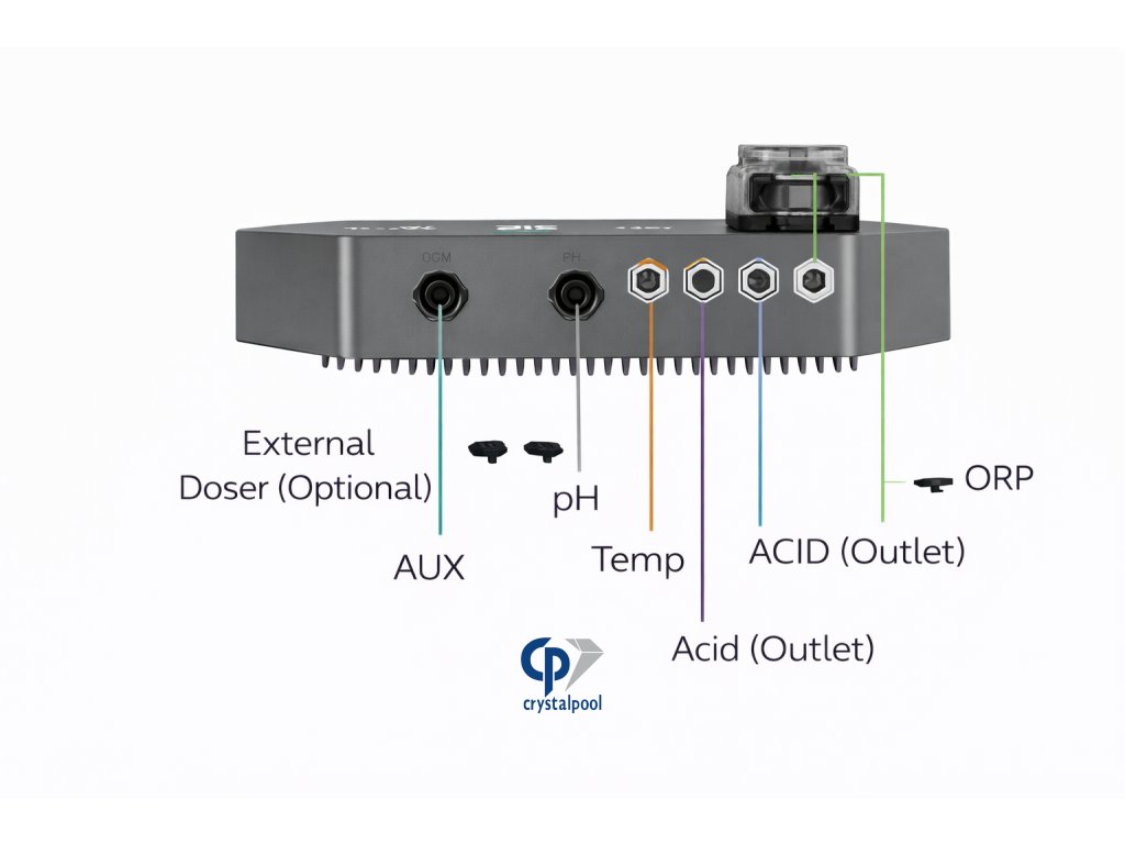 Vestavěné senzory pH, teploty a průtoku (volitelně ORP) umožňují inteligentní automatickou úpravu vody a udržení optimální úrovně dezinfekce bez nutnosti neustálého zásahu. Integrované dávkovací čerpadlo a možnost připojení k mobilní aplikaci dělají z iSALT moderní, plně automatizované řešení.