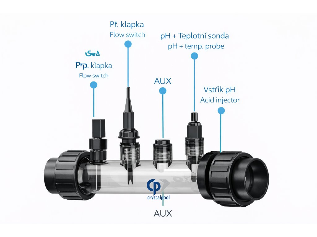 ✅ Invertorová regulace výkonu (0–100 %) – přesné řízení produkce chloru podle aktuální potřeby bazénu.
