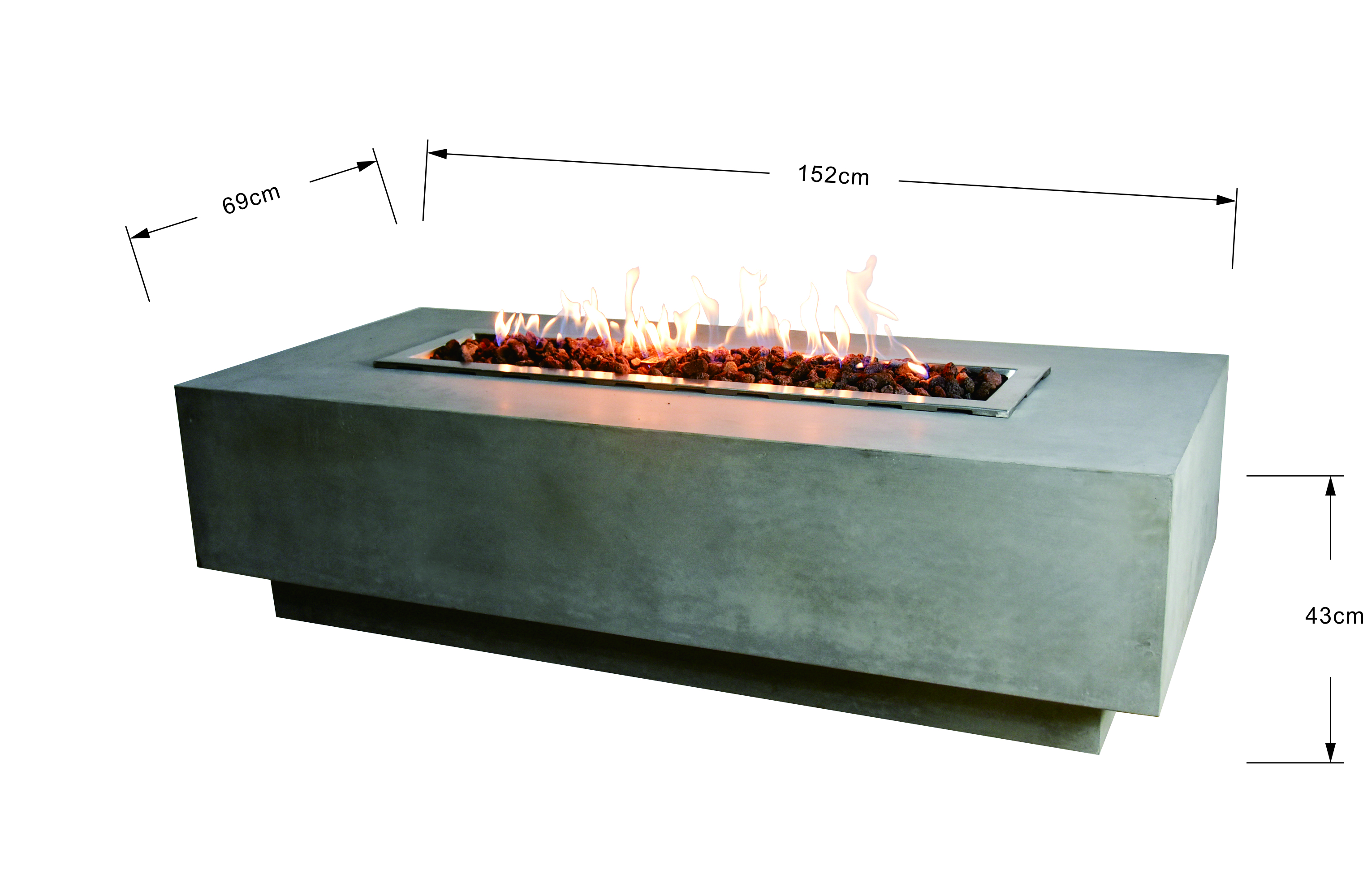 Konstrukce ohniště je ručně vyrobena z lehkého betonu vyztuženého skelnými vlákny, takzvaný GRC (Glassfibre Reinforced Concrete). GRC je vysoce pevný materiál s dlouhou životnost, který odolává: