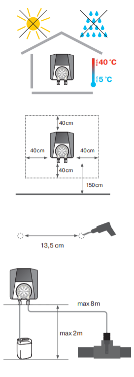Automatické dávkovací čerpadlo pro časové dávkování přípravku FLOC+C. Pro bazény a whirlpooly 1 – 250 m3 (max. dávkování do tlaku 1 bar).