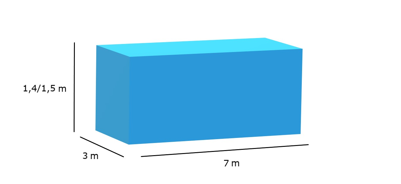 Pro tento rozměr bazénu 7 x 3 x 1,4/1,5 m o objemu 31,5 m3 doporučujeme zakoupit čerpadlo o výkonu 6 a 7 m3/hod.