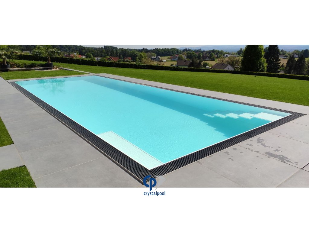 Přeliv může být instalován okolo celého bazénu či pouze na jedné straně tzv. jednostranný přeliv.
