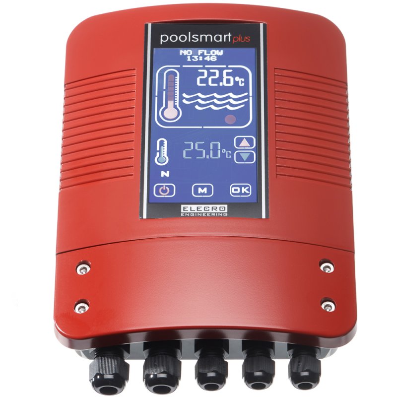 Ovládejte systém vytápění bazénu a udržujte dokonalou teplotu bazénu s nejnovější verzí zařízení Poolsmart Plus. Poolsmart Plus je vybaven digitálním dotykovým displejem, který vám umožní ovládat funkce dotykem prstu. Poolsmart Plus je připraven na zapojení do Vašeho stávajícího bazénového systému.