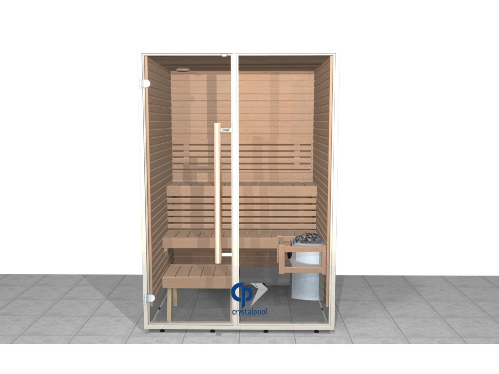 Koupelnová sauna svými rozměry nezabere příliš místa, ale i přesto díky prosklené stěně dává pocit vzdušnosti a prostoru. O vyhřátí sauny se starají elektrická kamna HARVIA Vega BC5E o výkonu 3,5 kW. Obložení sauny je vyrobeno z olše nebo z osiky, zatímco lavice v provedení Formula je z příjemného dřeva africké vrby abachi.