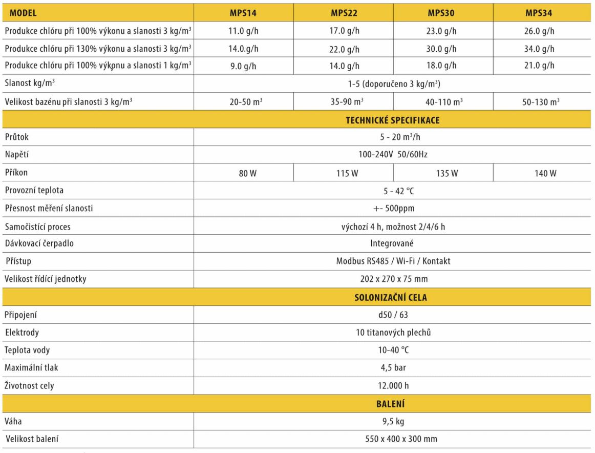 | Max. produkce chloru (Salinita: 3000 ppm): | 22 g/h |