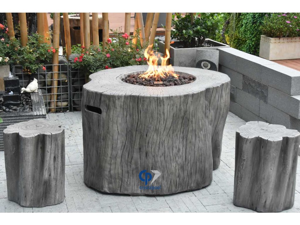 Ke stylovému plynovému ohništi WARREN si můžete pořídit i špalek na sezení ve stejném designu. Vytvoříte tak harmonické venkovní posezení, které vypadá jako přírodní dřevo, ale přitom nabízí pevnost a odolnost betonu.
