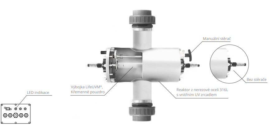 • Robustní nerez 316L UVM reaktor, který je elektrochemicky leštěný za účelem vzniku vnitřního zrcadlového povrchu