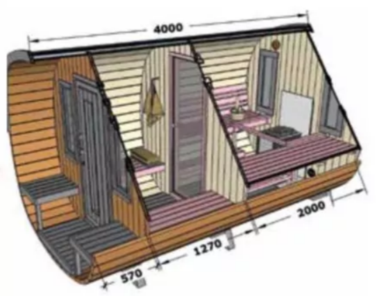 - topení: saunové topidlo na tuhá paliva včetně komínového systému, nebo elektrická - není součástí dodávky