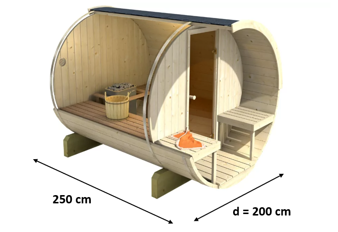 - topení: saunové topidlo na tuhá paliva včetně komínového systému, nebo elektrická 7,5 -9 kW - není součástí dodávky