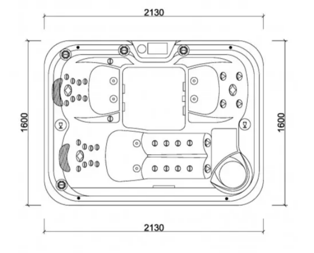 Vířivá vana disponuje 43 masážními tryskami, z toho 37 je hydromasážních, 6 vzduchových trysek.