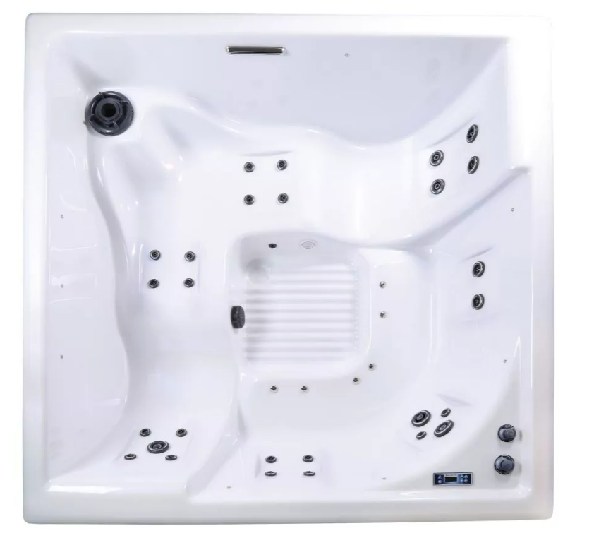 Masáž zajišťuje 34 trysek, z toho 28 z nich je hydromasážních, 6 vzduchových trysek.