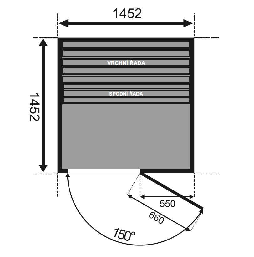 - Rozměry sauny: 145x145 cm, výška 193 cm