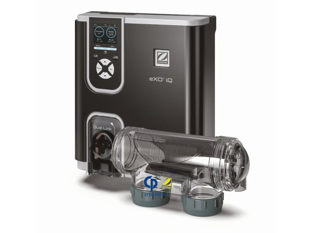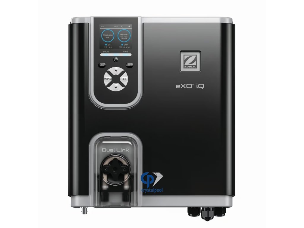 Zodiac eXO® iQ R je komplexní systém úpravy vody, který z běžné slané vody automaticky vyrábí chlór pomocí elektrolýzy soli. Výkon výroby lze procentuálně regulovat podle aktuální potřeby bazénu, což zajišťuje stabilní dezinfekci a dlouhodobě čistou vodu bez výkyvů.